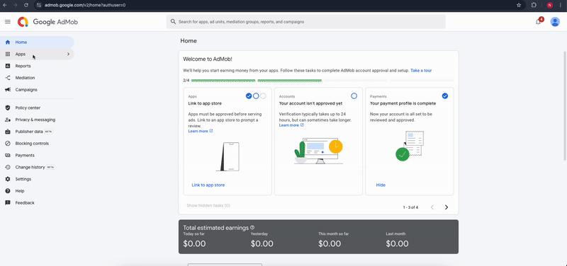 - App status in the AdMob dashboard should change from "Not yet validated" to "Ready to serve ads" within a few hours.