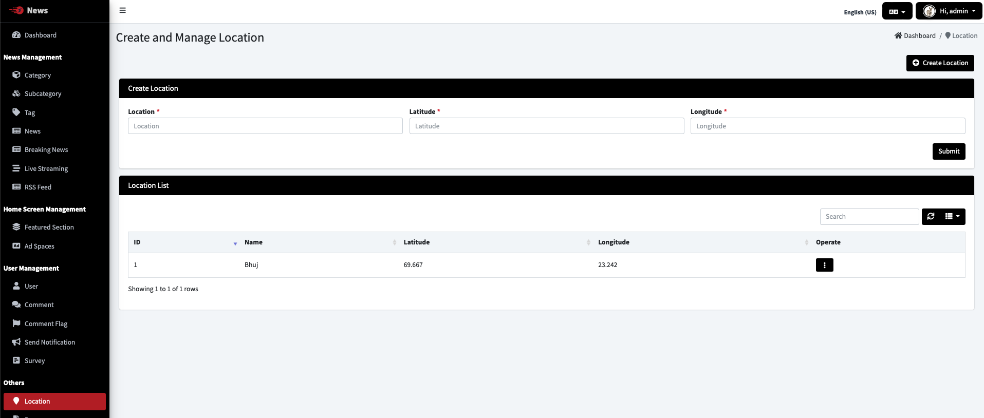 If location setting is enabled in app setting then only those news are appears in app and web which are falls in that radius which is set in Nearest location measure (in KM).
